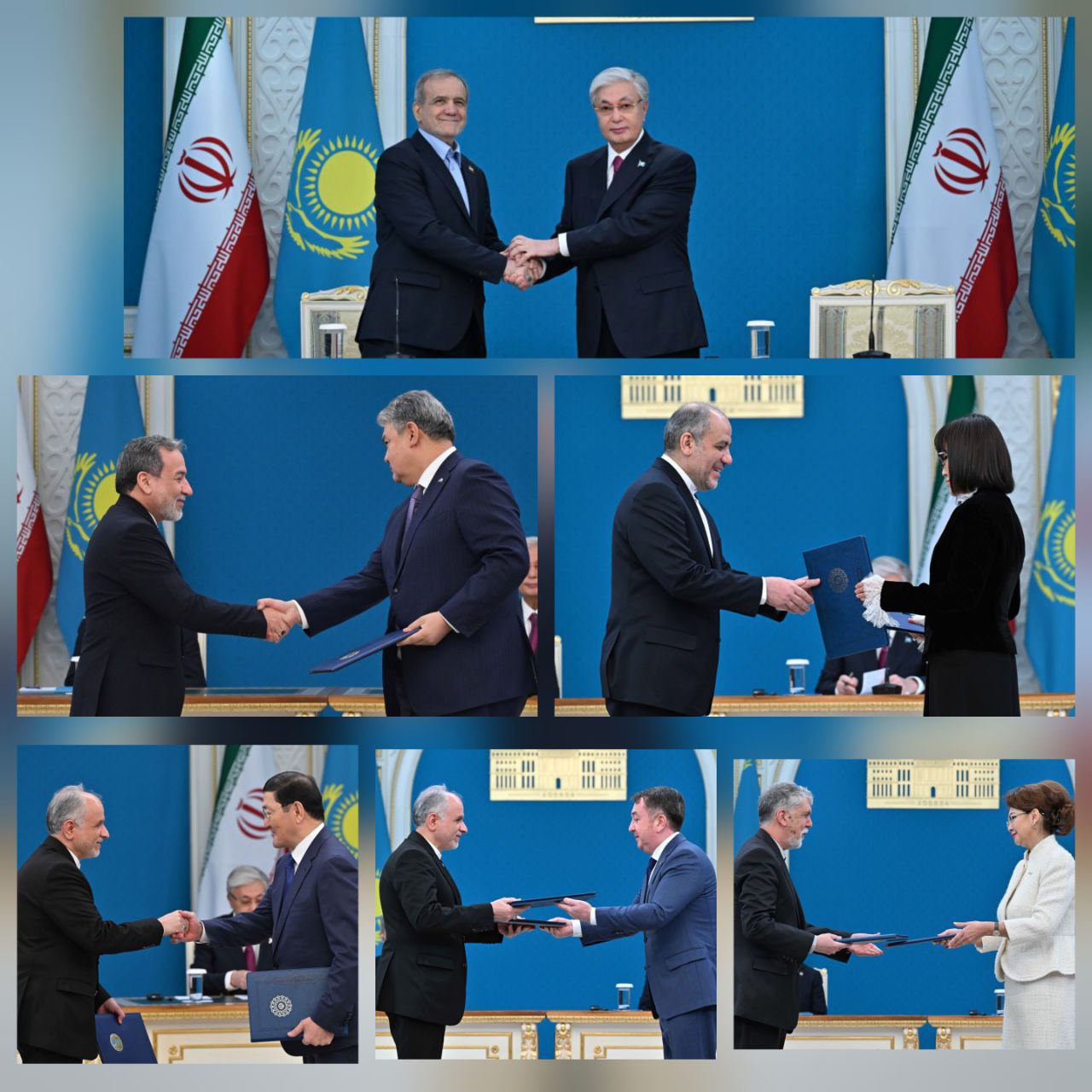 ۲۰ آذر ۱۴۰۴ — رئیس‌جمهور قزاقستان، آقای قاسم‌ژومارت توقایف، و رئیس‌جمهور جمهوری اسلامی ایران، دکتر مسعود پزشکیان، پس از برگزاری دیدار دوجانبه و بررسی موضوعات کلیدی همکاری‌های دو کشور، در مراسم تبادل اسناد همکاری حضور یافتند.