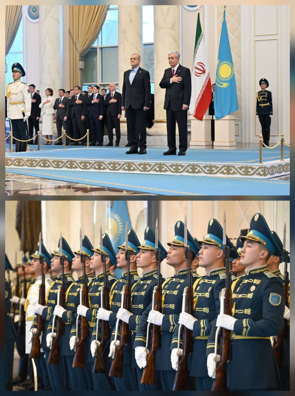 11 Декабря 2025, В Акорде состоялась торжественная церемония встречи Президента Исламской Республики Иран доктора *Масуда Пезешкиана*, прибывшего в Казахстан с официальным визитом.