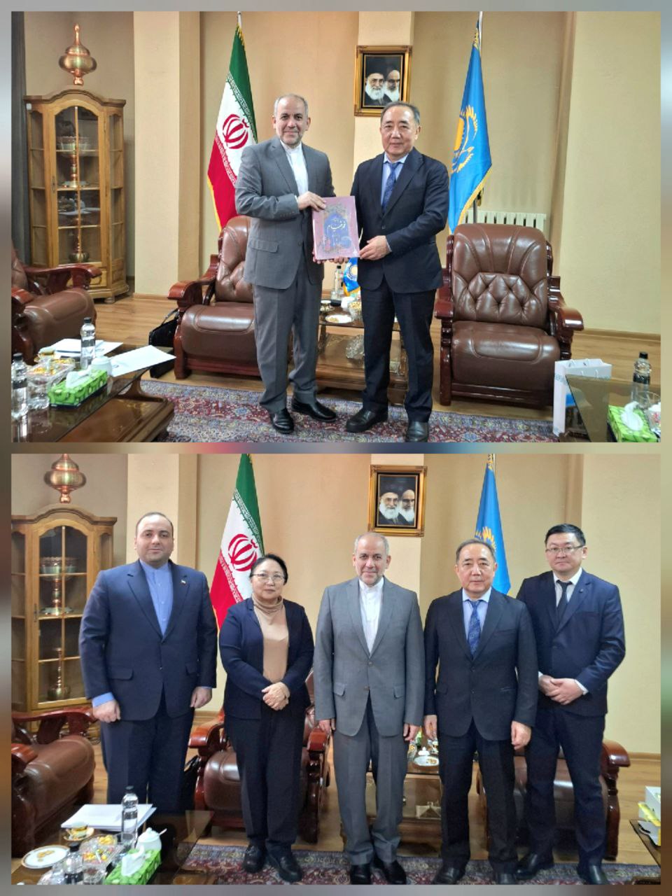 Понедельник, 29 декабря 2025, Али Акбар Джокар, Чрезвычайный и Полномочный Посол Исламской Республики Иран в Республике Казахстан, встретился с Кудайбергеном Базарбаевым, Чрезвычайным и Полномочным Послом Кыргызской Республики, в Республике Казахстан .