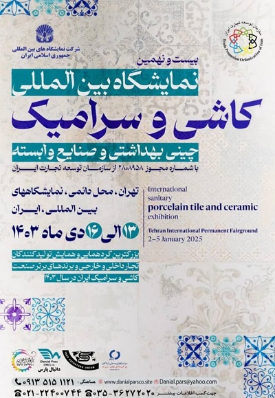 Кафель мен керамика, сантехнихникалық бұйымдар және осыған қатысты салалардың 29-шы халықаралық көрмесі 2025 жылдың 2-5 қаңтарында Тегеранда өткізіледі.